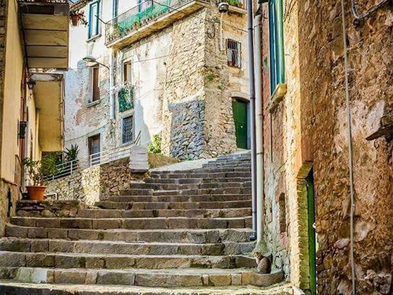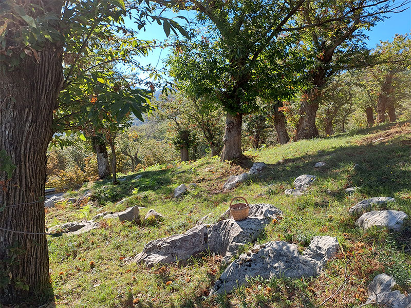 Immersa in un paesaggio multiforme, tra fitti boschi e campi coltivati, si arriva nella cittadina delle castagne. Lungo i sentieri e le stradine che costeggiano il paese, i rami dei castagni sono ricolmi di ricci e sulle soglie delle abitazioni si notano canestri intrecciati pieni di castagne, lucenti e corpose.